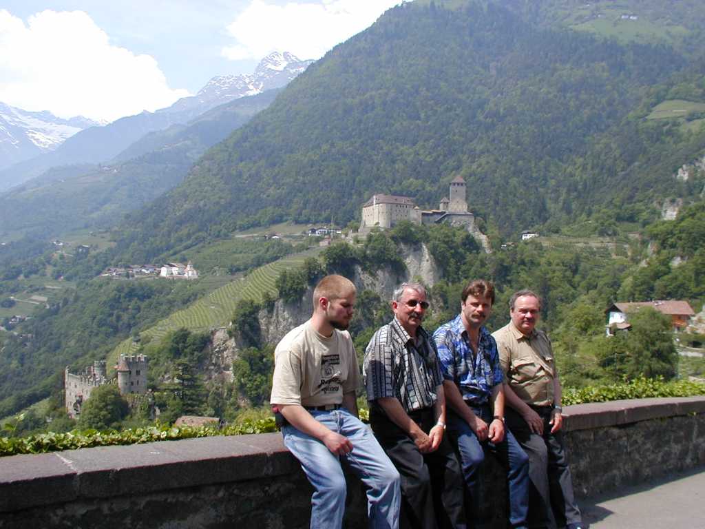 | Sonntag, 19.05.02 | Nach dem Frühstü,ck fahren wir über die Brenner-Autobahn Richtung Bozen und dann im Etschtal nach Meran. Aufenthalt in dieser weltberühten Kurstadt. Weiterhin besuchen wir das malerische über Meran liegende Dorf Tirol.