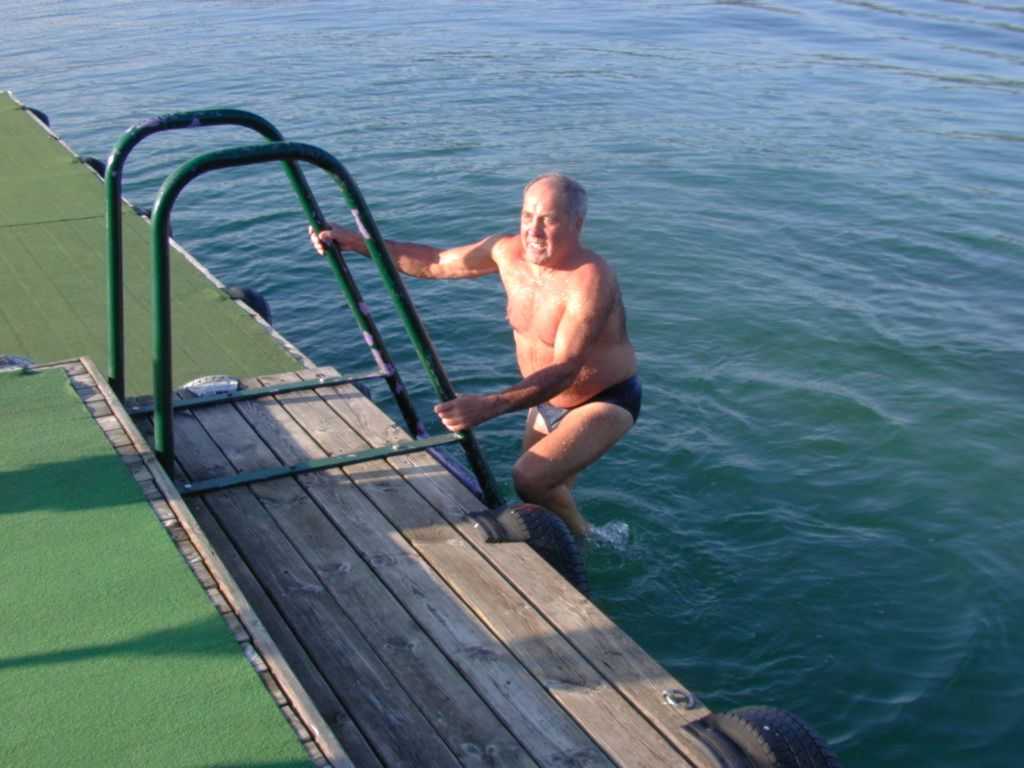 dem Wörthersee. Bei einer Wassertemperatur von nur 21° traute sich nur Horst Baum zu baden. Mit dem Abendessen