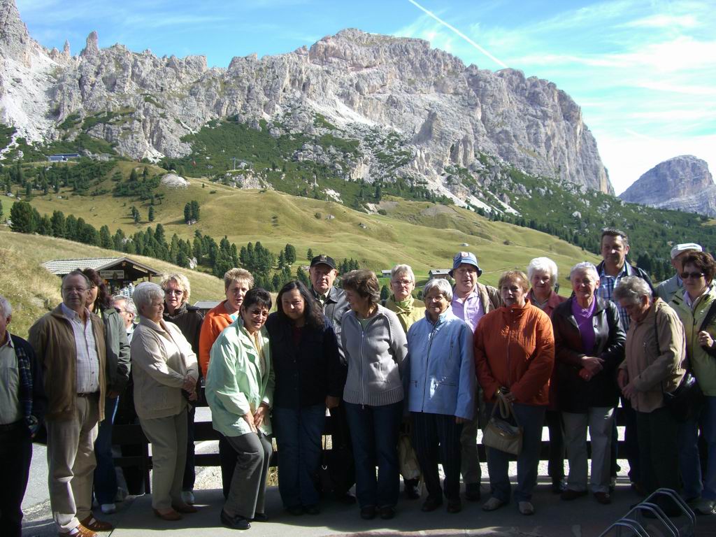 Danach fuhren wir über den Brenner zu unserem Gasthof „Zum weissen Kreuz“ in Latzfons. Hier konnten wir die herrliche Aussicht über das Eisacktal zu den Dolomiten genießen. Die Dolomitenrundfahrt am nächsten Tag bei Bilderbuchwetter und bester Sicht war ein unvergessliches Erlebnis. Über das Grödner Joch und den Pordoi Pass bewieß unser Busfahrer bei den vielen Serpentinen sein können. Er chauffierte uns (insgesamt über 1600 km) sicher zu vielen Aussichtspunkten. Zum Abschluss der Rundfahrt kamen wir in der Weinstraße nach Tramin zum Kaffeetrinken oder Eis essen. Hier konnten wir einen farbenträchtigen Umzug der Schützenvereine erleben. Der Sonntagvormittag wurde zum Wanderern und Frühschoppen genutzt. Am Nachmittag beeindruckte uns der Almabtrieb und das Volksfest in Latzfons. Das schöne Wetter begleitete uns auch auf der Heimfahrt noch bis zu unserer Rast in Rattenberg. Der danach einsetzende Regen konnte aber unsere gute Stimmung nicht mehr trüben. Zum Abendessen fuhren wir wieder nach Rothenkirchen zum „Hauckensepper“.