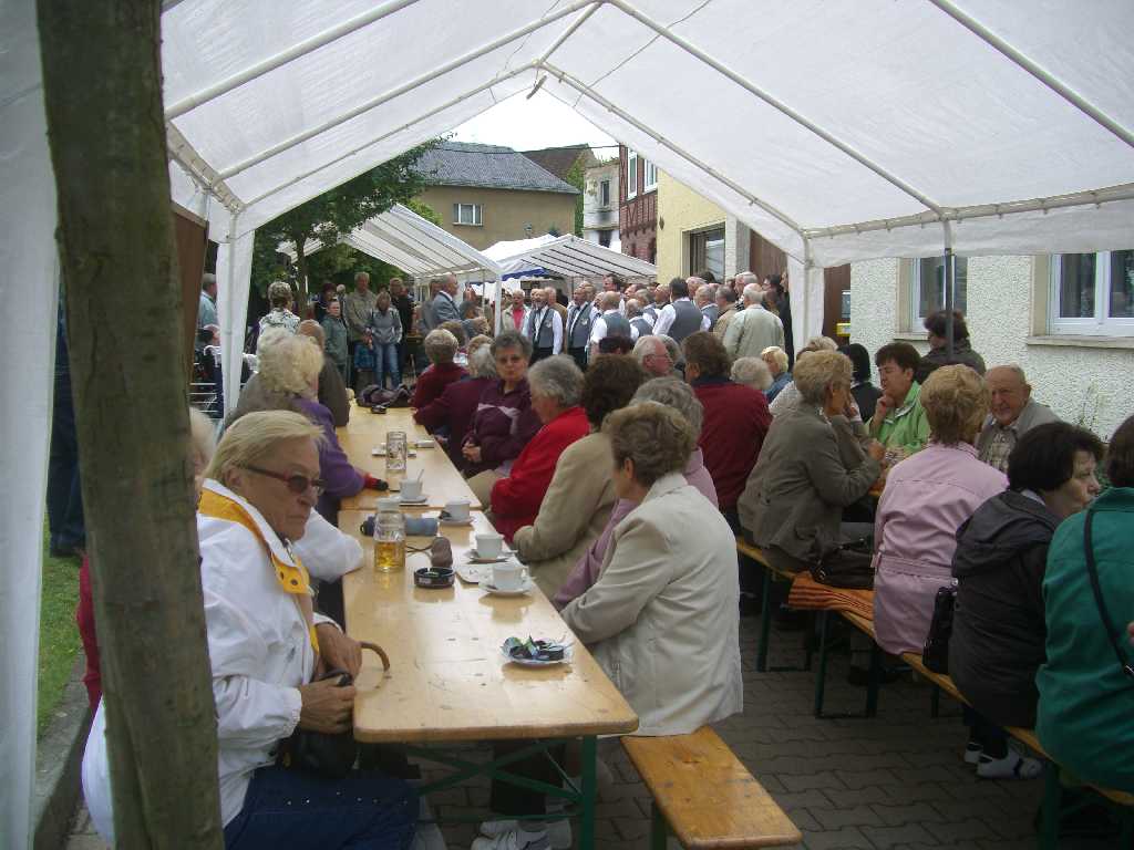 Bisher hatte der Gänsemarktverein mit dem Wetter immer viel Glück gehabt. Und auch in diesem Jahr ist man wieder mit einem blauen Auge davon gekommen. Die Prognosen verhießen nichts Gutes. Doch zumindest am Freitag hat das Wetter mitgespielt. Und so konnte die Nachwuchsband "Jukeboxx" mit viel Beifall bedacht werden. Im Anschluss legten die "Rock Tigers" richtig los und brachten nicht nur die Jugend in Hochstimmung.Am Samstag gab nach dem Böllerschießen die Kindertanzgruppe vom Kindergarten Kaulsdorf den Auftakt. Sie wurden mit viel Beifall und einem Eis belohnt. Im Anschluss wurden die langjährigen Mitglieder Dieter-Johannes Bücker, Horst Baum, Jana Storz und Sabine Munsche für ihren großen Einsatz für den Verein mit Gutscheinen ausgezeichnet. Bei der Wahl zum Gänseliesel 2011 wurden Michelé Fiehring und Caprice Müller knapp von Annabel Abend geschlagen, die bereits 2009 den Wettbewerb gewann. Der Verein gratulierte dem Männerchor Fischersdorf zum 115-jährigen Jubiläum und den Waldspitzbuben zum 25-jährigen Bestehen. Im An-schluss wurden wir durch die Chöre (Frauenchor Kaulsdorf, Männerchöre Kaulsdorf/Fischersdorf und Männerchor Eichicht) unterhalten. Die "Waldspitzbuben aus Thüringen" wussten auch in diesem Jahr die Stimmung auf dem Festplatz zu heben. Am späten Nachmittag zeigte uns "Der Philipp" was deutscher Hoppelrock ist.
