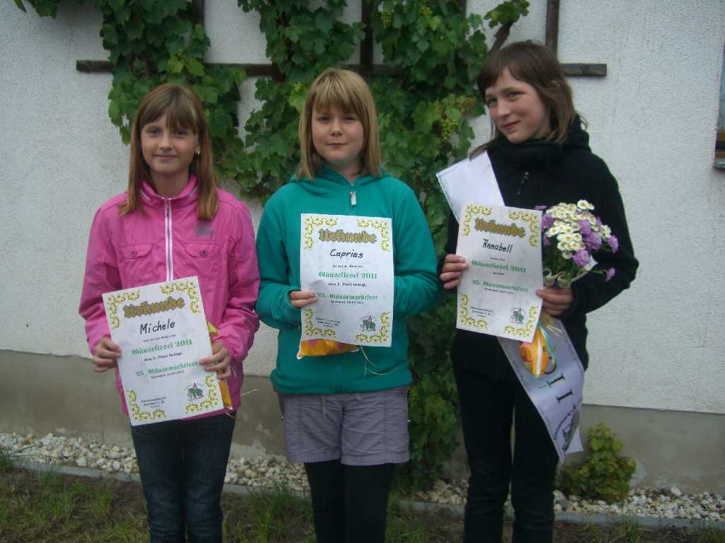 Am Samstag (02.07.2011) werden Langschläfer pünktlich um 14 Uhr durch die Böllerschützen geweckt. Nach dieser auch für unfreiwillige Nutzer kostenfreien Dienstleistung, haben die Kinder die Ehre das Programm zu eröffnen. Schon seit vielen Jahren weiß die Kindertanzgruppe Jung und Alt zu begeistern. Im Anschluss gibt es ein buntes Programm für die ganze Familie. Gansschießen, Galgenkegeln, Ponyreiten, Luftballonwettbewerb, Kinderschminken, Kuchenbasar, Tombola, Kinderspiele und nicht zuletzt die Wahl zum Gänseliesel bereichern unser Fest.