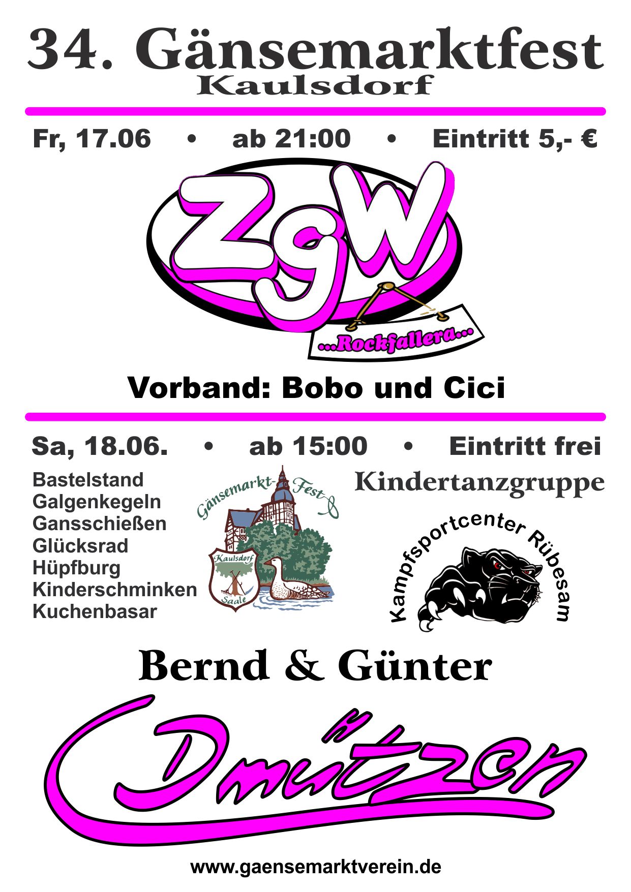 Der Samstag (18.06.) bietet dann bei freiem Eintritt ein Programm für die ganze Familie. Ob Gansschießen, Hüpfburg oder Kuchenbasar... hier ist für jeden was dabei.