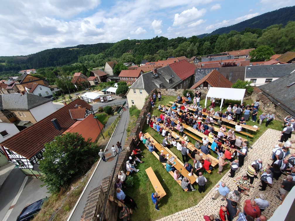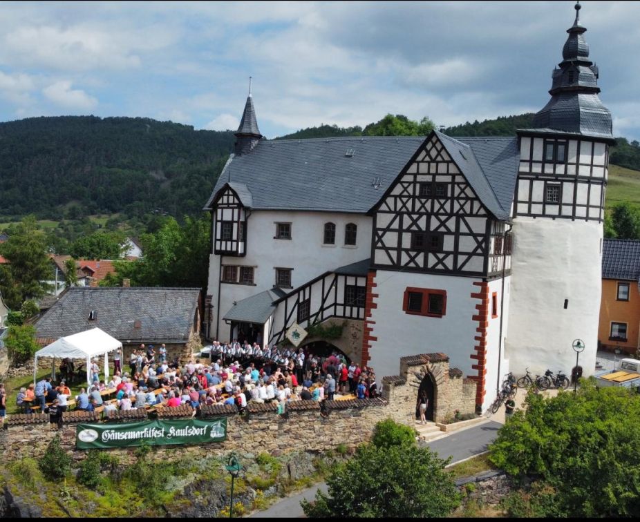Als besonderen Bonus gibt es am Sonntag einen Frühschoppen im Schlossgarten des Kaulsdorfer Wahrzeichens, welches auch im Vereinslogo des Gänsemarktvereins abgebildet ist. Für zünftige Stimmung sind hier für Euch der Gesangverein "Eintracht" Eichicht und "Harmonika Rainer" vor Ort.