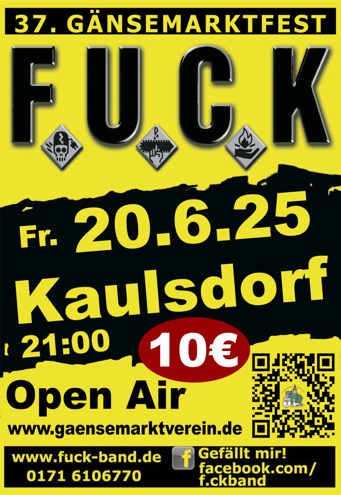 Nachdem es im letzten Jahr mit "950 Jahre Kaulsdorf" genug zu feiern gab, hätten wir uns eigentlich mal eine Pause verdient, oder? Nix da... wir legen uns weiter für Euch ins Zeug! Schließlich ist das kein X-beliebiges Jahr. Feiert mit uns das 37. Gänsemarktfest!Los gehts am Freitag, den 20.06.25 mit dem Open-Air. Wir holen für Euch F.U.C.K nach Kaulsdorf. Die Cover-Rockband hat in den letzten 30 Jahren schon auf so einigen Bühnen gerockt. Bei uns feiern sie Premiere und ihr seid für nur 10 € Eintritt dabei. Freut Euch auf professionelles Entertainment der härteren Sorte.