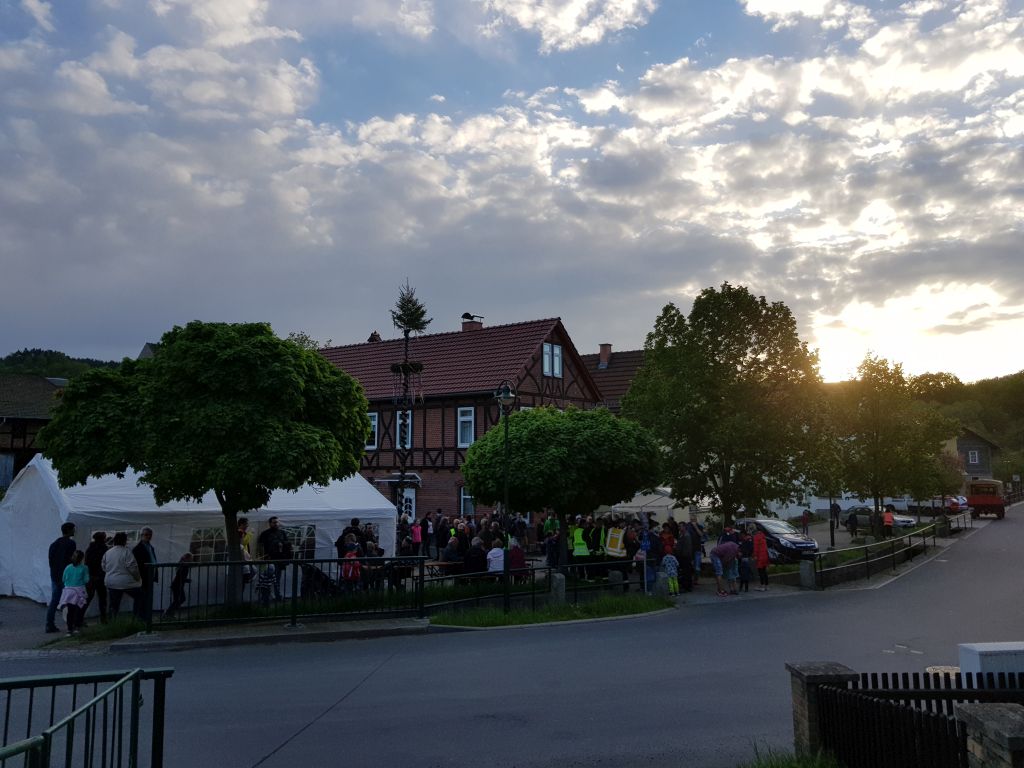 Wie jedes Jahr am 30.04. hat es sich der Gänsemarktverein zur Aufgabe gemacht, den Maibaum für Kaulsdorf aufzustellen. Nach bewährter Tradition wird bei der Gelegenheit auch der Rost angeschürt, so dass sich Jung und Alt vor dem Lampionumzug noch einmal stärken kann. Nach dem großen Aufbruch Richtung Sportplatz wurde es wieder etwas ruhiger und man konnte den Abend im Vereinszelt gemütlich ausklingen lassen.