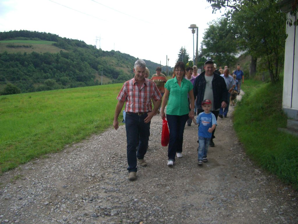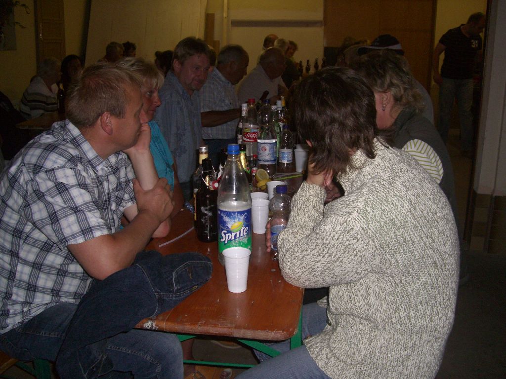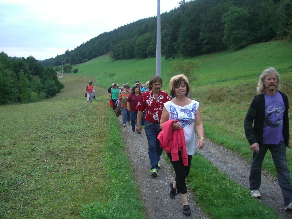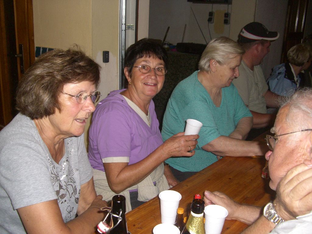 Wegen der unsicheren Witterung wurde das geplante Picknick am Wasserbasin kurzfristig in die Garage der Tischlerei Eckert verlegt. Nach einer diesmal kurzen Wanderung (noch bei Tageslicht) um das halbe Dorf (Lastweg-Betonwerk-Zimmersberg) fanden sich ca. 45 Mitglieder und einige Gäste in der Garage ein.