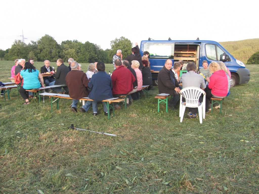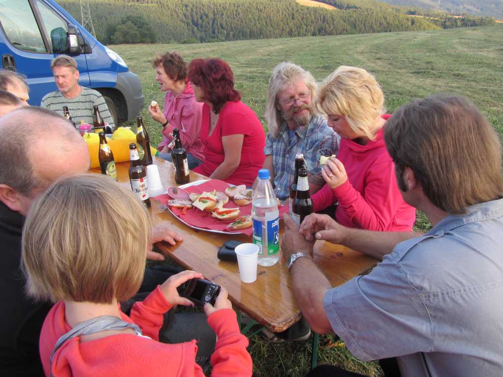 Am 11.08.2012 wanderten ca. 33 Mitglieder des Gänsemarktvereins nach 1900 Uhr zu den 3 Linden auf den Last. Bei warmem Sommerwetter waren die von Frank Eckert bereitgestellten Bierzeltgarnituren schnell besetzt und es konnte mit belegten Brötchen und diversen Getränken bei guter Aussicht auf unsere schöne Umgebung wieder Kraft für den Abstieg gesammelt werden. Zum Abschluss trafen sich ein Großteil der Wanderer noch in der "Schlemmerstube am Gänsemarkt" und ließen dort einen gelungenen Abend gemütlich ausklingen.