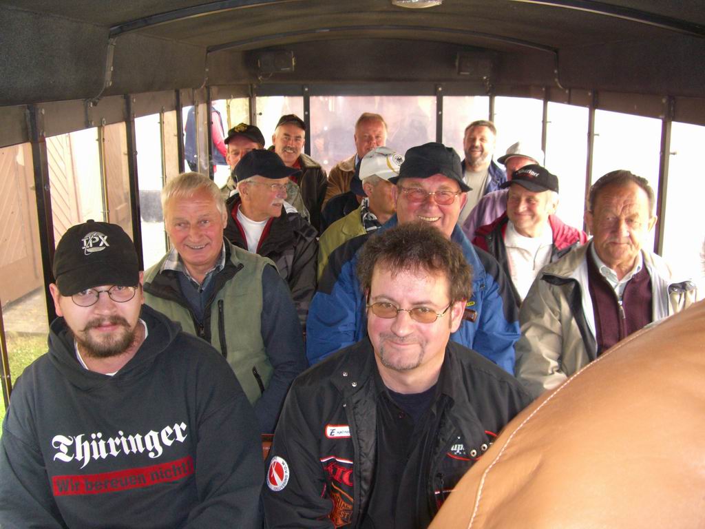 Zum Männertag hatte der Gänsemarktverein zum 4. Mal die Tschu-Tschu-Bahn bestellt. Über 40 Männer des Vereines, mit Gästen auch aus Zella, starteten pünktlich 8.30 Uhr vom Gänsemarkt. Bei leider etwas zu kühlem Wetter fuhren wir über Saalfeld durch das herrliche Schwarzatal zum Schweizerhaus. Von dort aus ging es zur Talsperre Lichte/Leibis und zum Mittagessen in Sitzendorf. Anschließend fuhren wir über Meura und Schmiedefeld nach Gebersdorf. Vorbei an schönsten Landschaften führte uns die humorvolle Fahrt über Gräfenthal und Eichicht zurück nach Kaulsdorf und Zella.