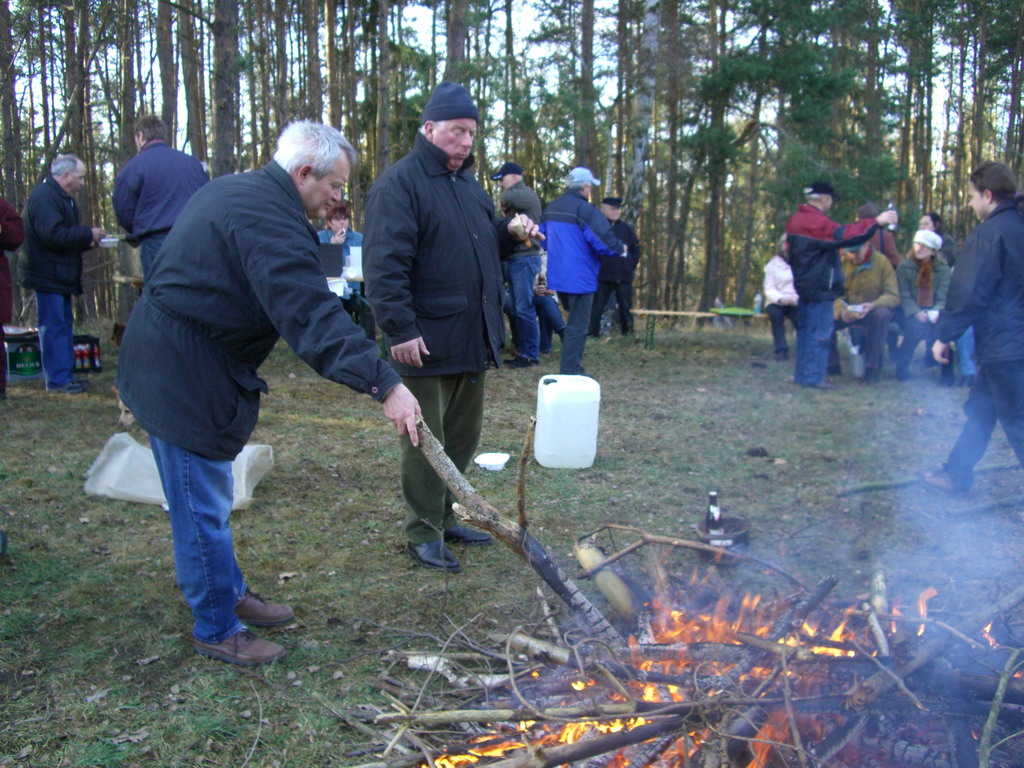 Die traditionelle Winterwanderung des Gänsemarktvereins führte uns am 26. Januar 2008 zum Dreiherrenstein. Über 50 Wanderfreunde trafen sich bei strahlendem Sonnenschein am vorbereiteten Lagerfeuer. Die Wanderer wurden am Lagerfeuer mit Glühwein verwöhnt. Der Party- und Pausenservice Krauße hatte außer Getränken Kesselgulasch und Kartoffelsuppe mit Wiener Würstchen angeliefert. Die Kinder konnten sich Würstchen am Lagerfeuer grillen. Da wieder einmal kein Schnee lag, konnte leider kein Schneemann gebaut werden. Die Wanderung endete im Gasthaus "Zum weißen Roß" bzw. in der Garage von G. Eckert. Hier wurden die Reste der Suppe „verarbeitet“ und neue Pläne geschmiedet. An dieser Stelle ein herzliches Dankeschön an alle, die zum guten Gelingen der Winterwanderung beigetragen haben.