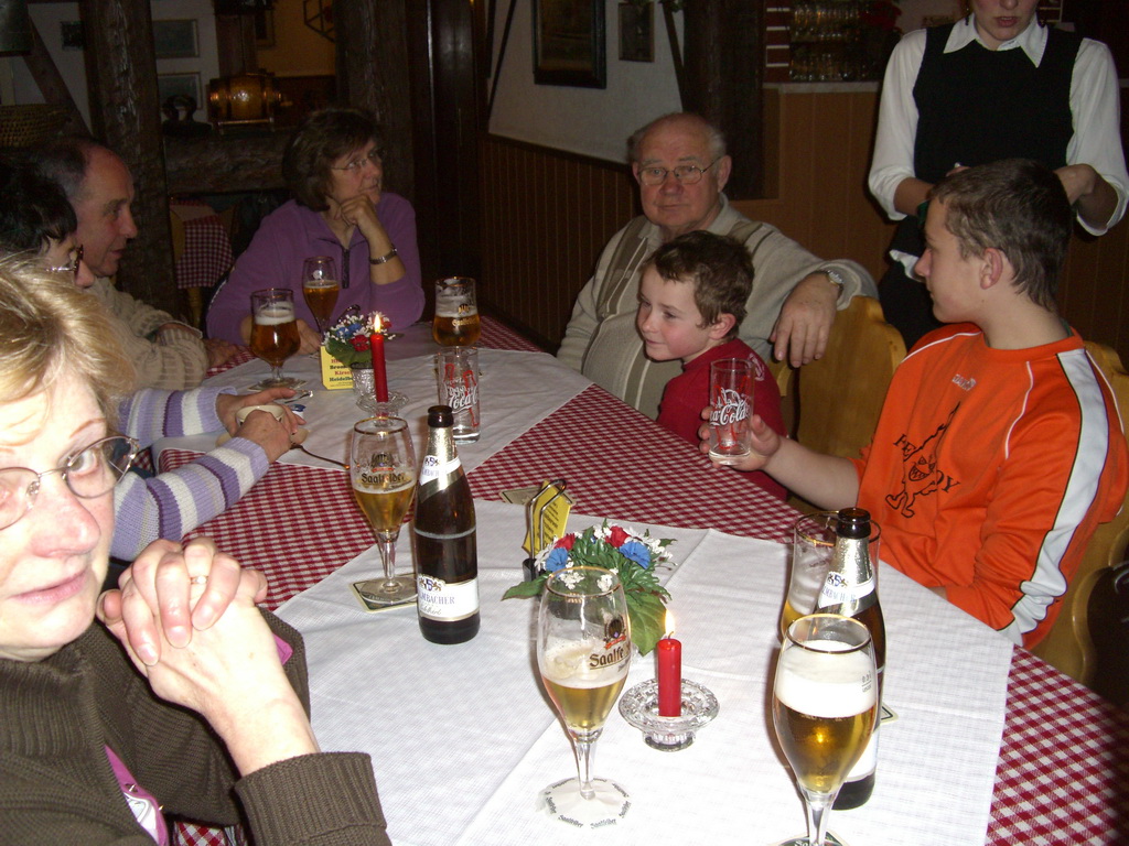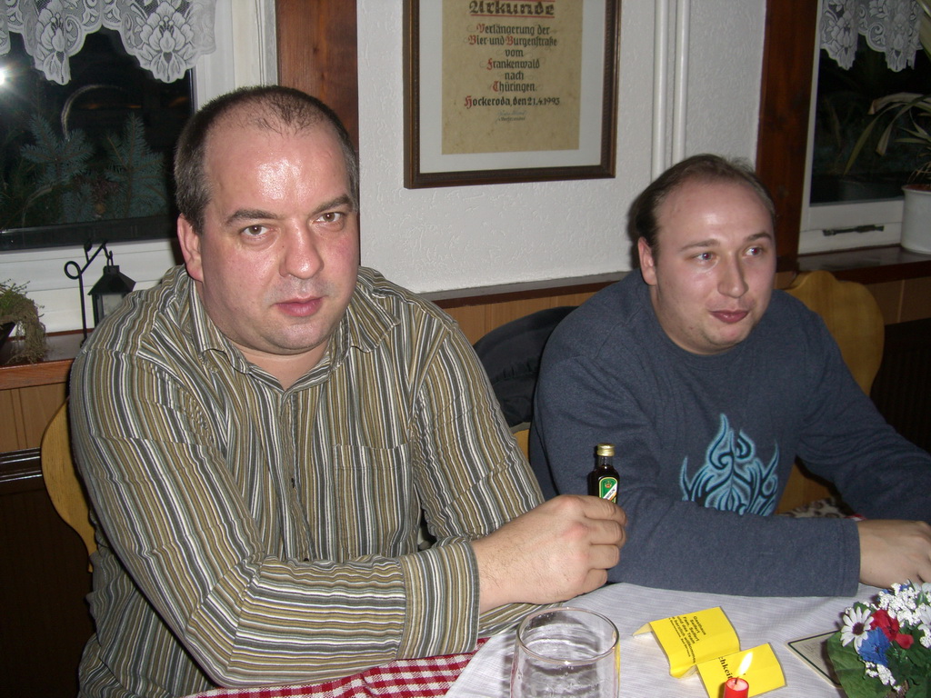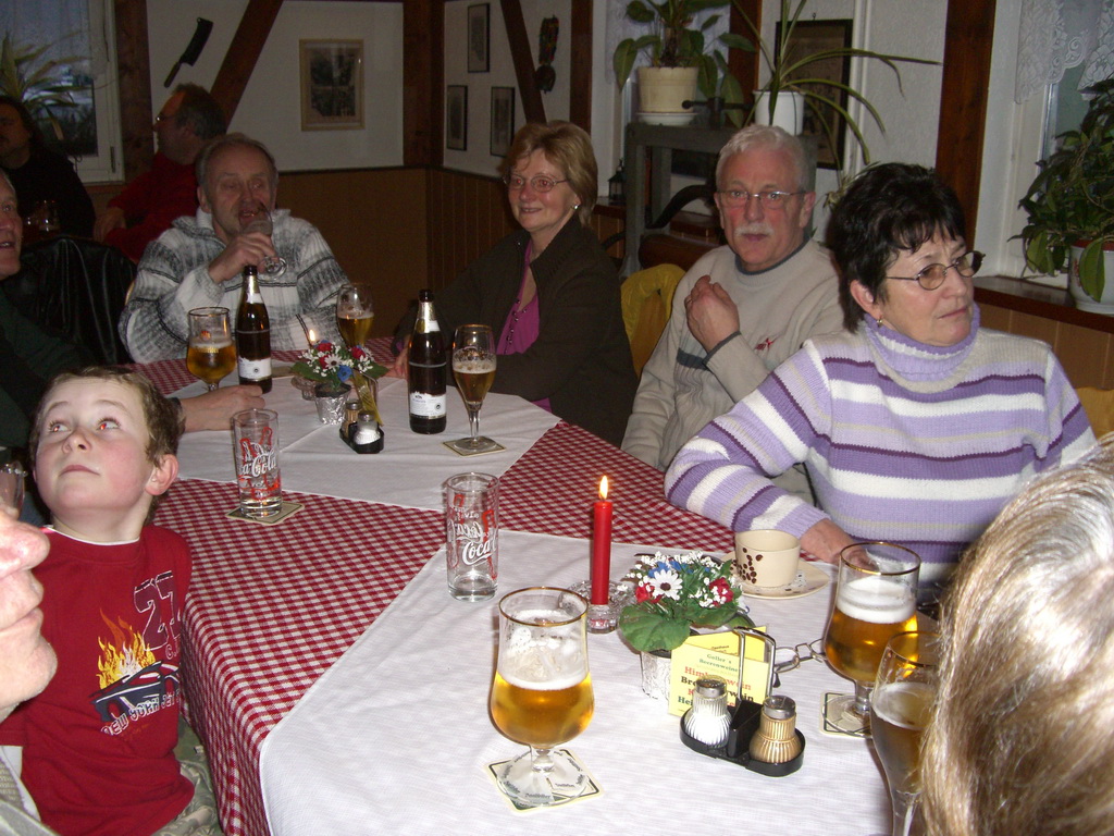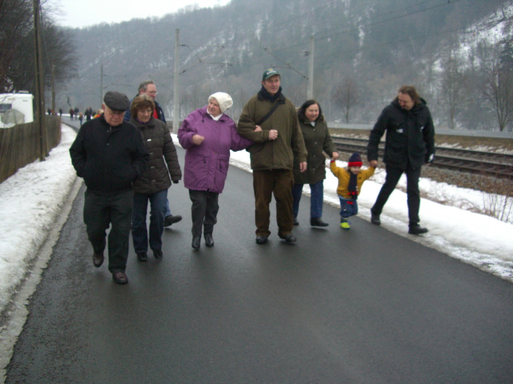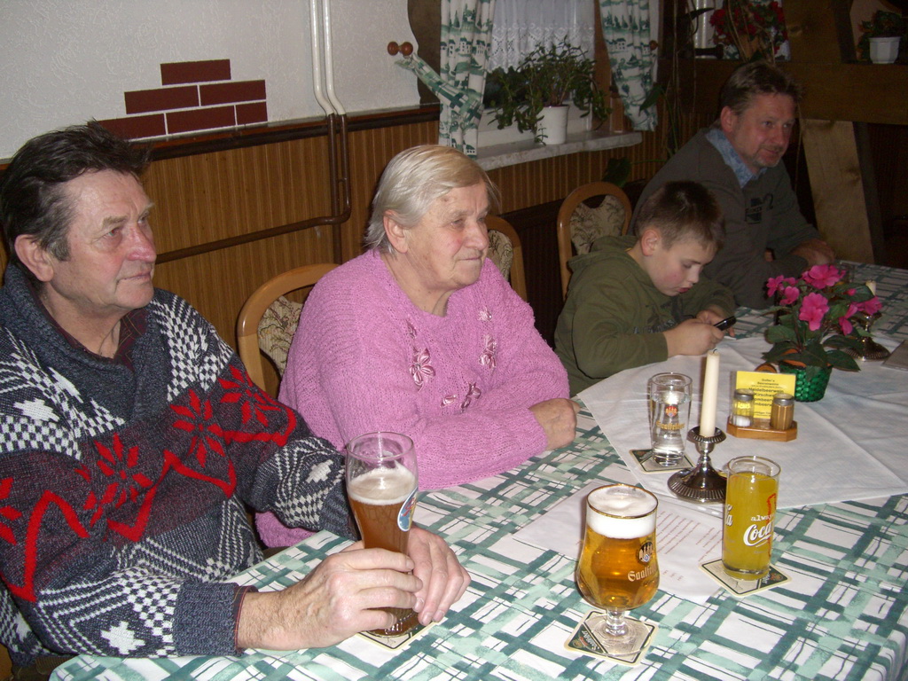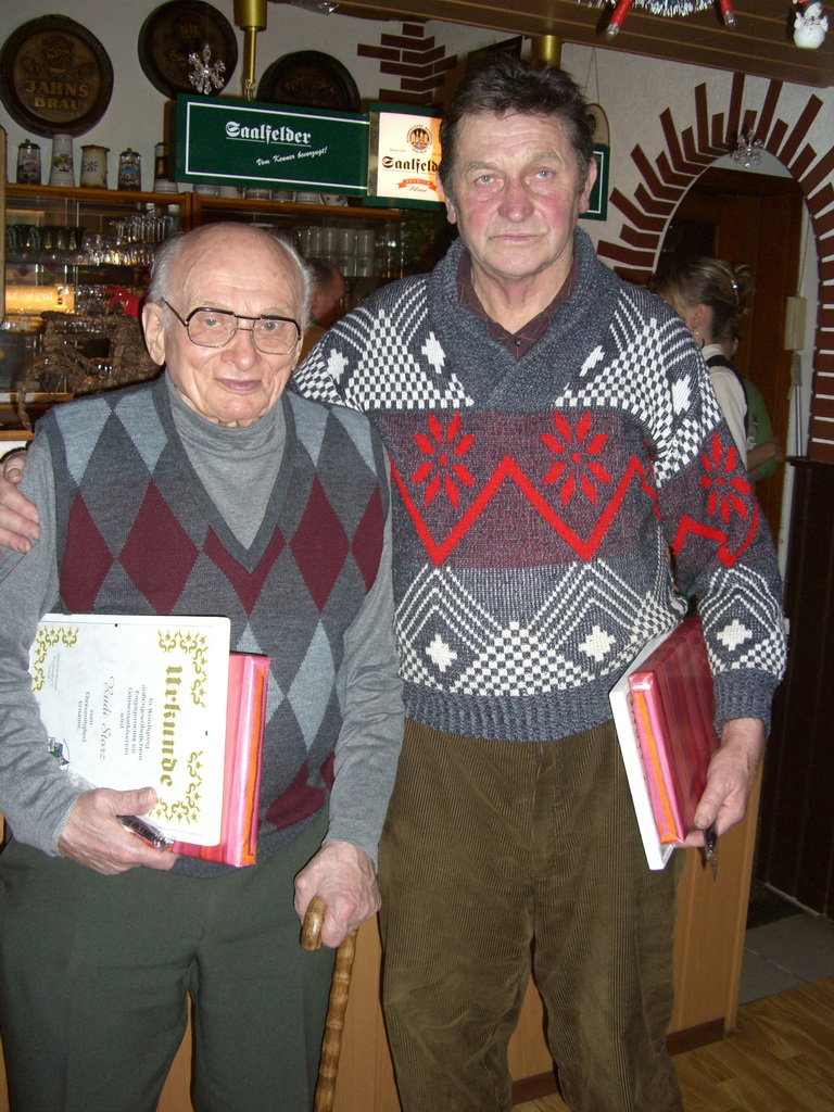 Glühwein vom Partyservice Krauße wanderte der größte Teil der Wanderer nach Hockeroda zum Gasthaus „Seifert“. Hier wurden wir freundlich empfangen und gut bewirtet. Bei dieser Gelegenheit wurden die langjährigen Mitglieder Günther Eckert und Rudi Storz für ihr außergewöhnliches Engagement im Gänsemarktverein durch den Vorstand zu Ehrenmit-gliedern ernannt. Ein herzliches Dankeschön an den Bauhof Kaulsdorf insbesondere an Herrn Andreas Bartz, dem Party- & Pausenservice Krauße, dem Team des Gasthauses „Seifert“ in Hockeroda und an den Fahrservice Seeliger für die Unterstützung.