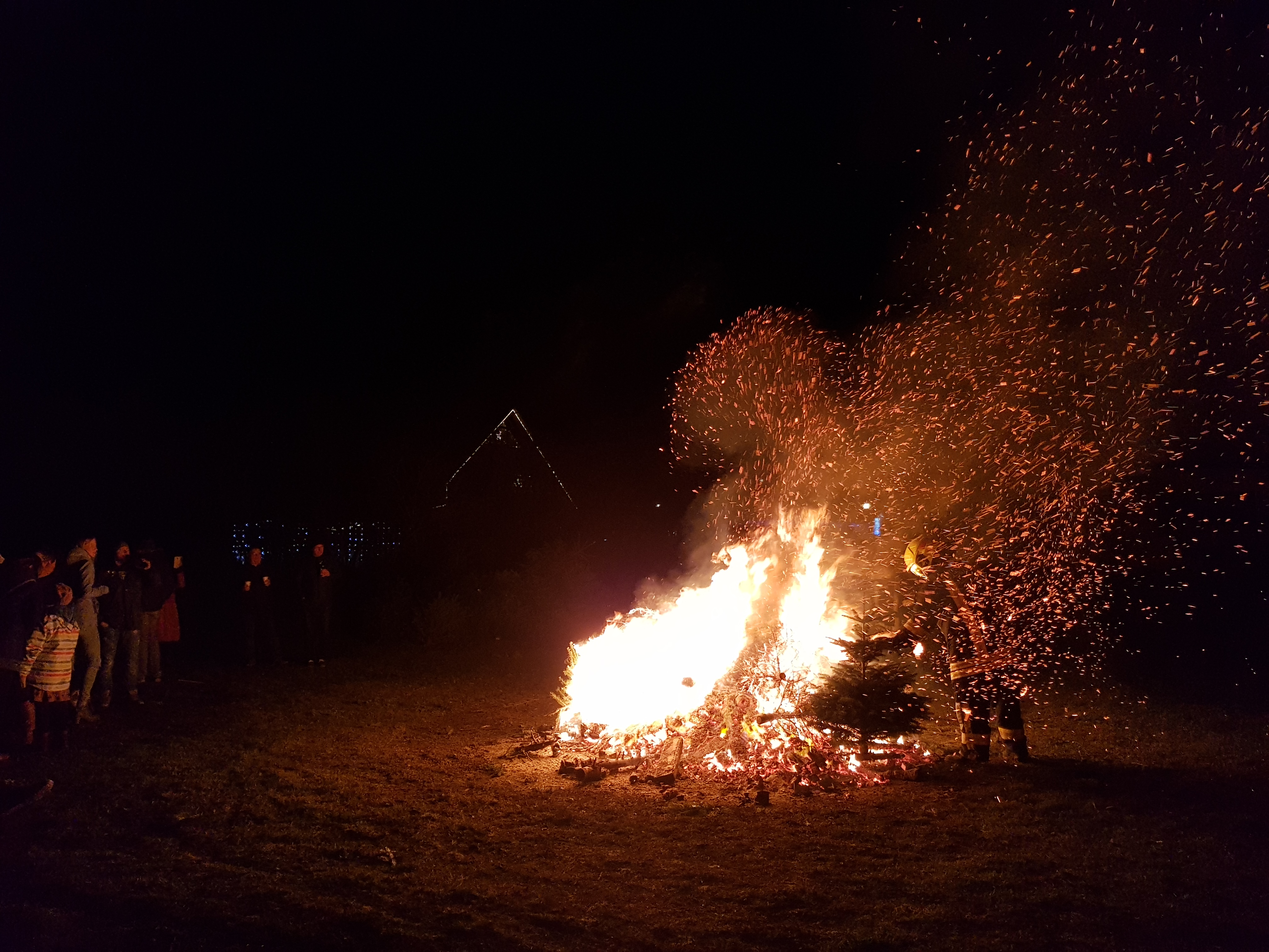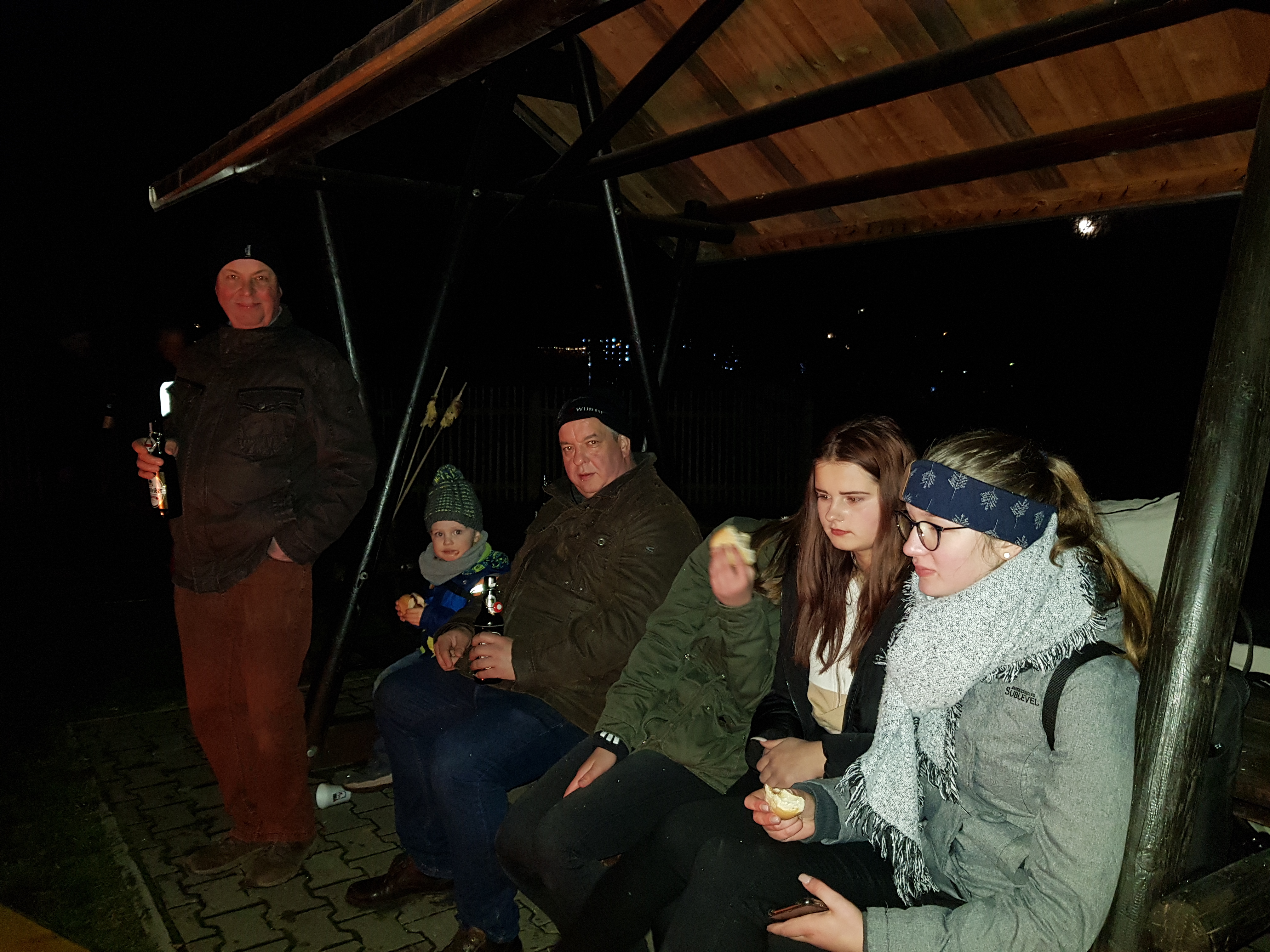 Auf dem Rückweg ließen es sich viele nicht nehmen, der Weihnachtsbaumverbrennung auf dem Kaulsdorfer Sportplatz beizuwohnen.