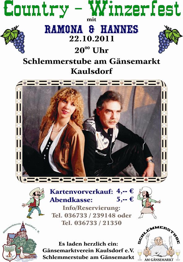 Am 22.10.2011 fand in der "Schlemmerstube am Gänsemarkt" ein Country-Winzerfest mit "Ramona & Hannes"